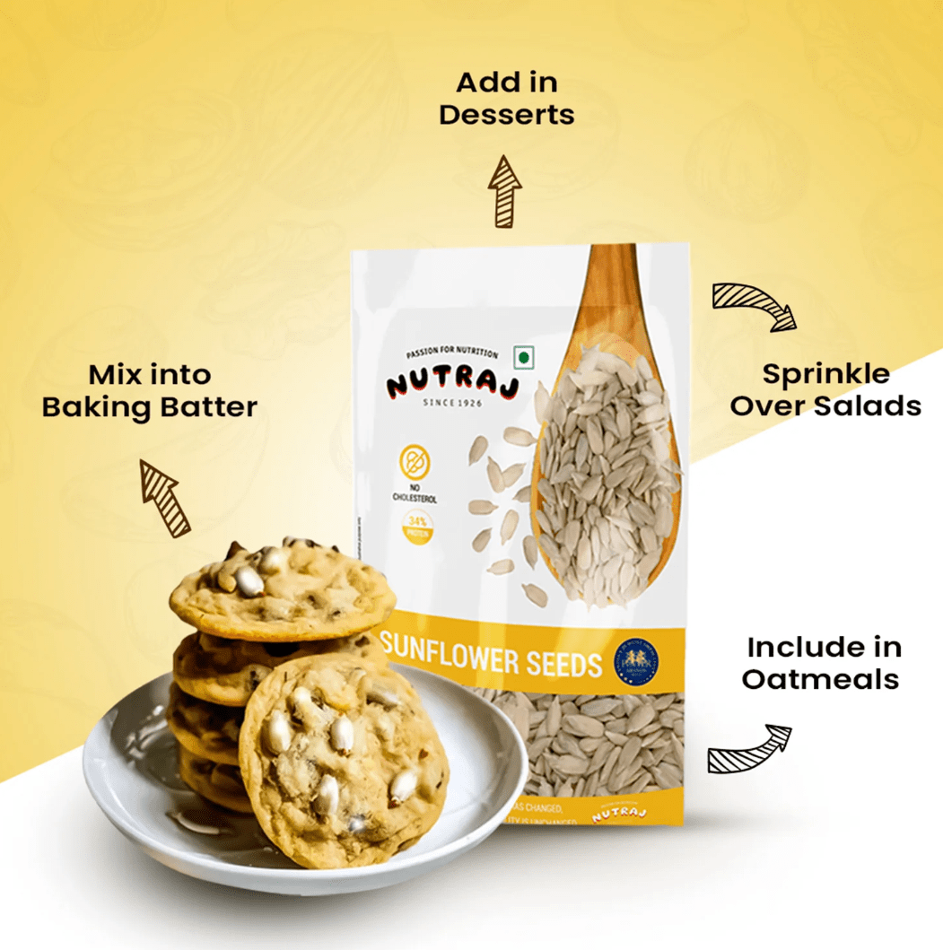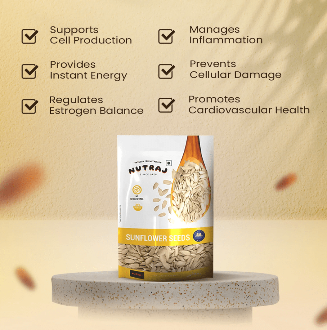 Sunflower seeds are a nutritional marvel that can turn any boring meal into a tasty delight through their mild flavor and crunch. In addition, Nutraj Sunflower Seeds are packed with multiple nutrients which are useful for promoting general well-being. Some of its health benefits include: