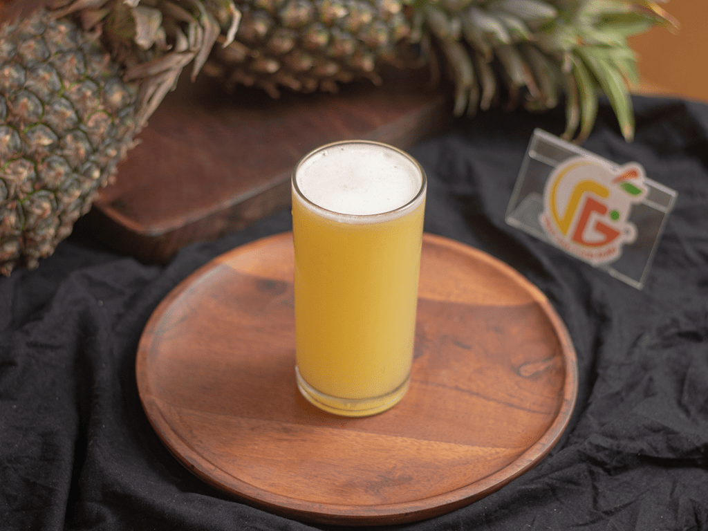 Tropical pineapple juice, naturally tangy and sweet—pure and bursting with flavor! 🍍